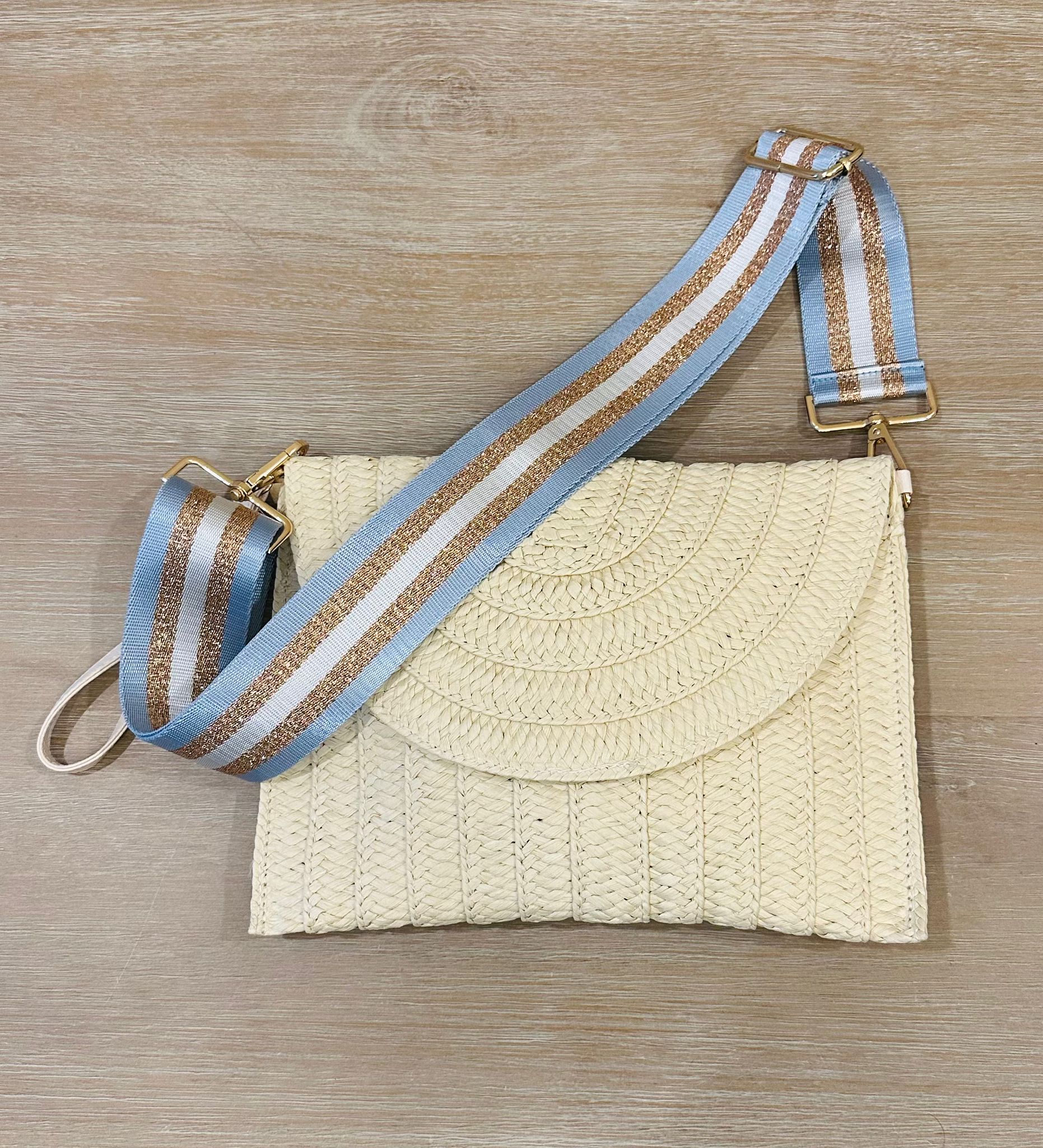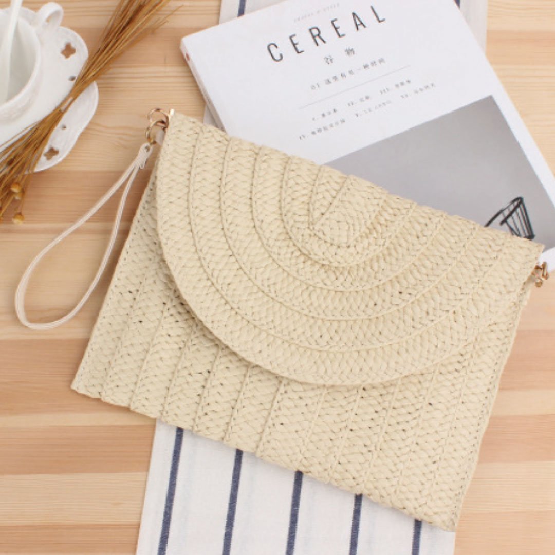 Ari is the portrait of a tropical clutch. Handwoven straw with rounded design on flap. Not too big or too small.